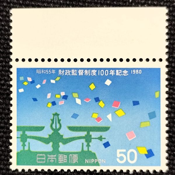 - [25040938]【財政監督制度100年記念】単片「はかりと紙ふぶき模様」50円 1980年発行 美品
