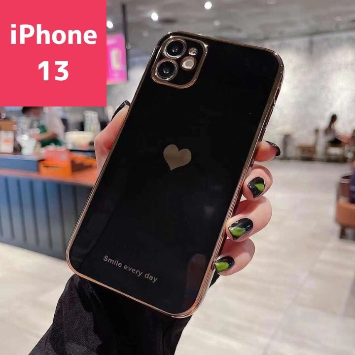 - iPhone13 ケース 可愛い ハート おしゃれ メッキ 人気 ブラック