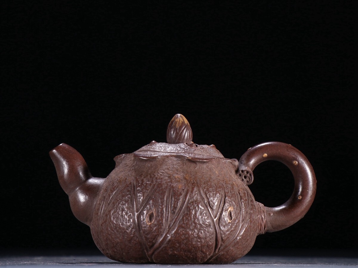 - 「紫砂彫 蓮蓬紫砂茶壺 陳鳴遠銘 清時代」陶磁器 急須 茶道具 古賞物 中国古美術 旧蔵出