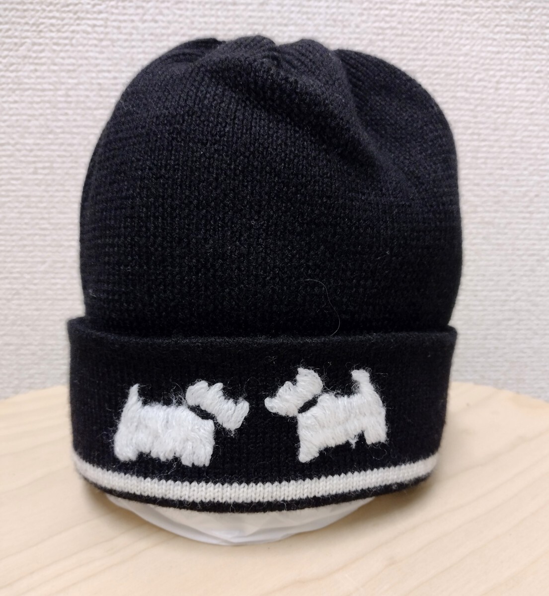 > 【新品タグ付】Black & White 刺繍ロゴ ウール ビーニー FREEサイズ 日本製 ゴルフ ブラック&ホワイト ニットキャップ ニット帽