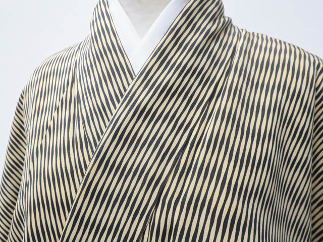 - 《古美術京松》【着物】小紋 よろけ縞文 身丈約153.5cm 裄丈約63cm r7z02-110