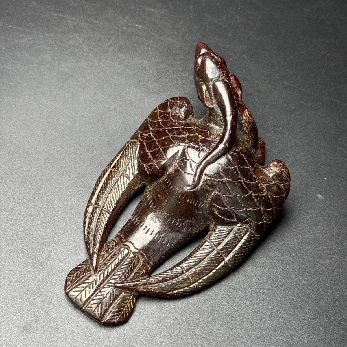 - 【超珍館蔵】和田玉製 細密彫 神鳥 置物 古賞物 古美術品 稀少珍蔵品