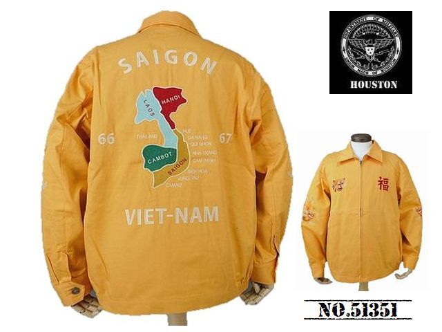 - 【送料無料 25%OFF】HOUSTON ヒューストン コットンツイル ベトジャン VIETNAM JUMPER 「MAP」 NO.51351 YELLOW(ORANGE) _Lサイズ