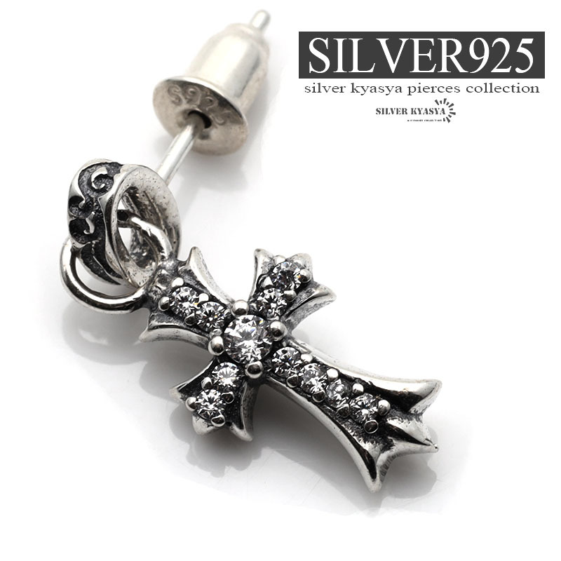 - クロスピアス シルバー925 ドロップピアス パヴェダイヤ 唐草 アラベスク 模様 ピアス 片耳用 金属アレルギーフリー