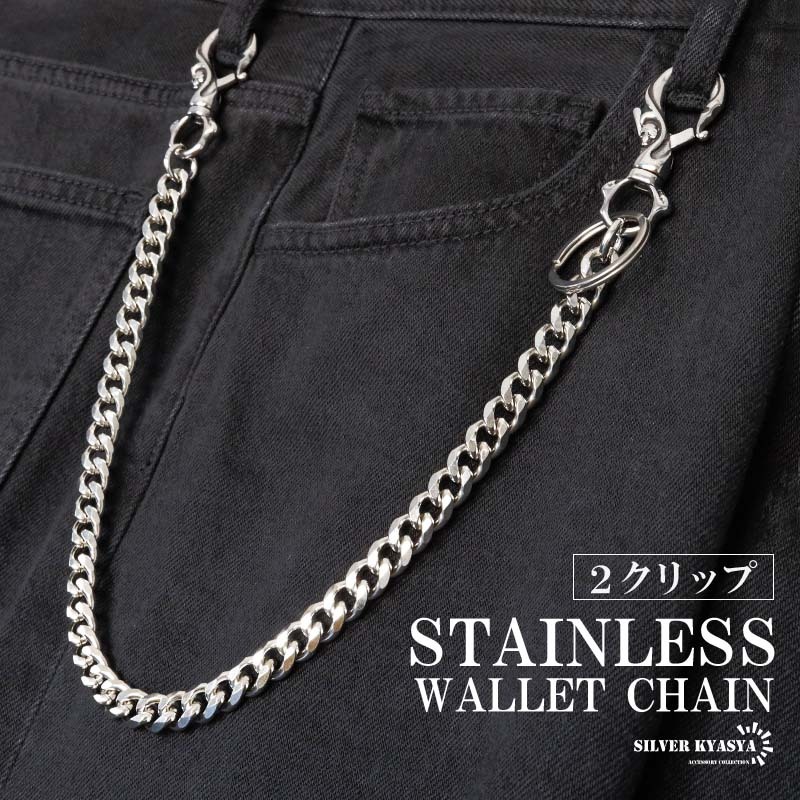 - ステンレス ウォレットチェーン 財布 喜平チェーン シンプル 316L 唐草 スカル 2クリップ メンズ ズボン アメカジ 財布紐