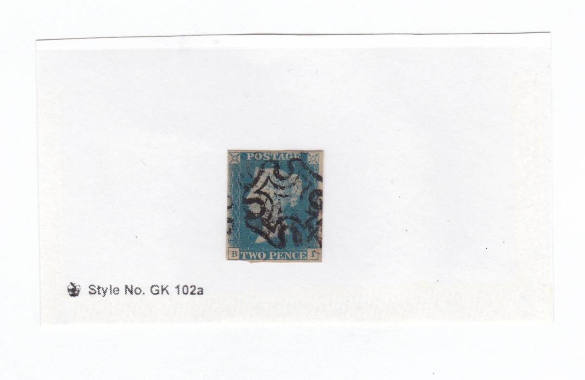 - 英国 切手 世界初の切手 2ペンス 青 のり付き 使用済み 消印付き two pence blue
