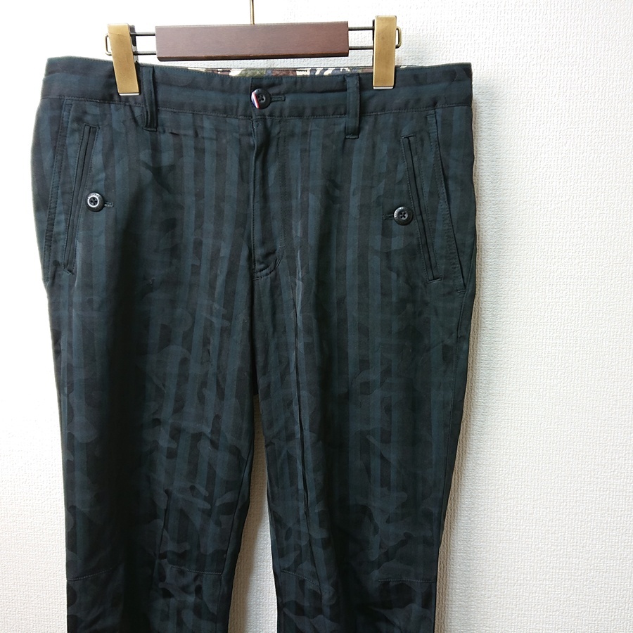 - le coq sportif ルコックスポルティフ 迷彩ストライプ パンツ ゴルフパンツ グリーン系