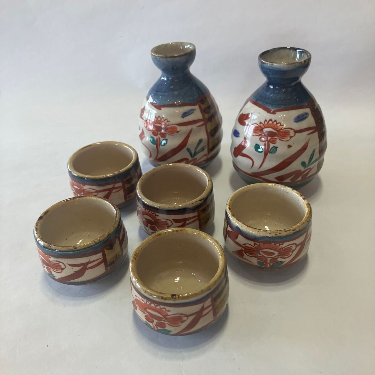 - 唐津赤絵酒器 徳利2客 お猪口5客 酒器セット 未使用保管品