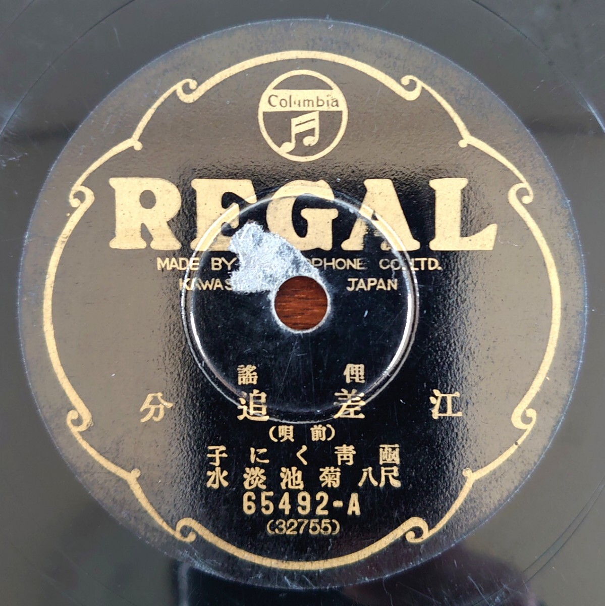 - 【SP盤レコード/薄ヒビ】REGAL 65492 俚謠/江差追分(前唄・本唄)/凾青くに子 尺八:菊池淡水