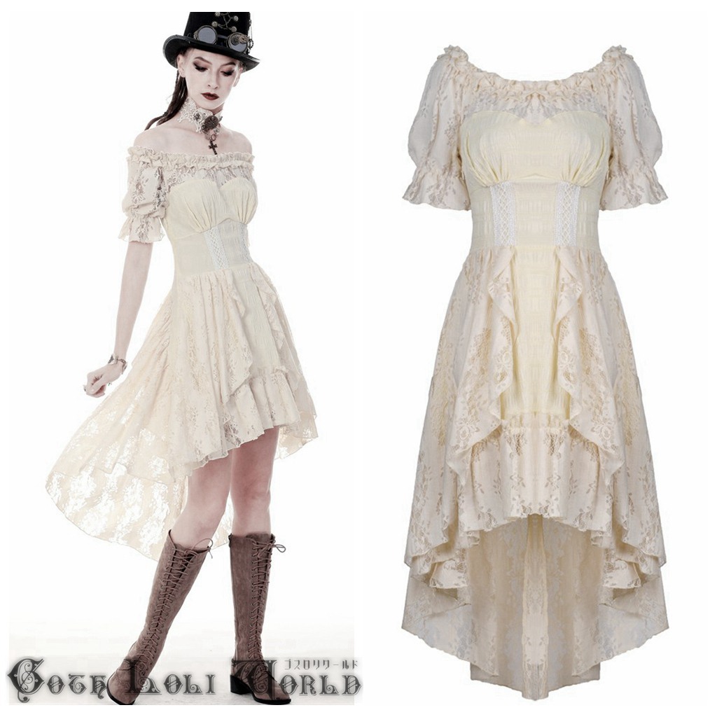 - DW358-M DIL ゴスロリ スチームパンクパフスリーブ ワンピース オフホワイト ゴスロリワールド ゴシック ロリィタ スチームパンク