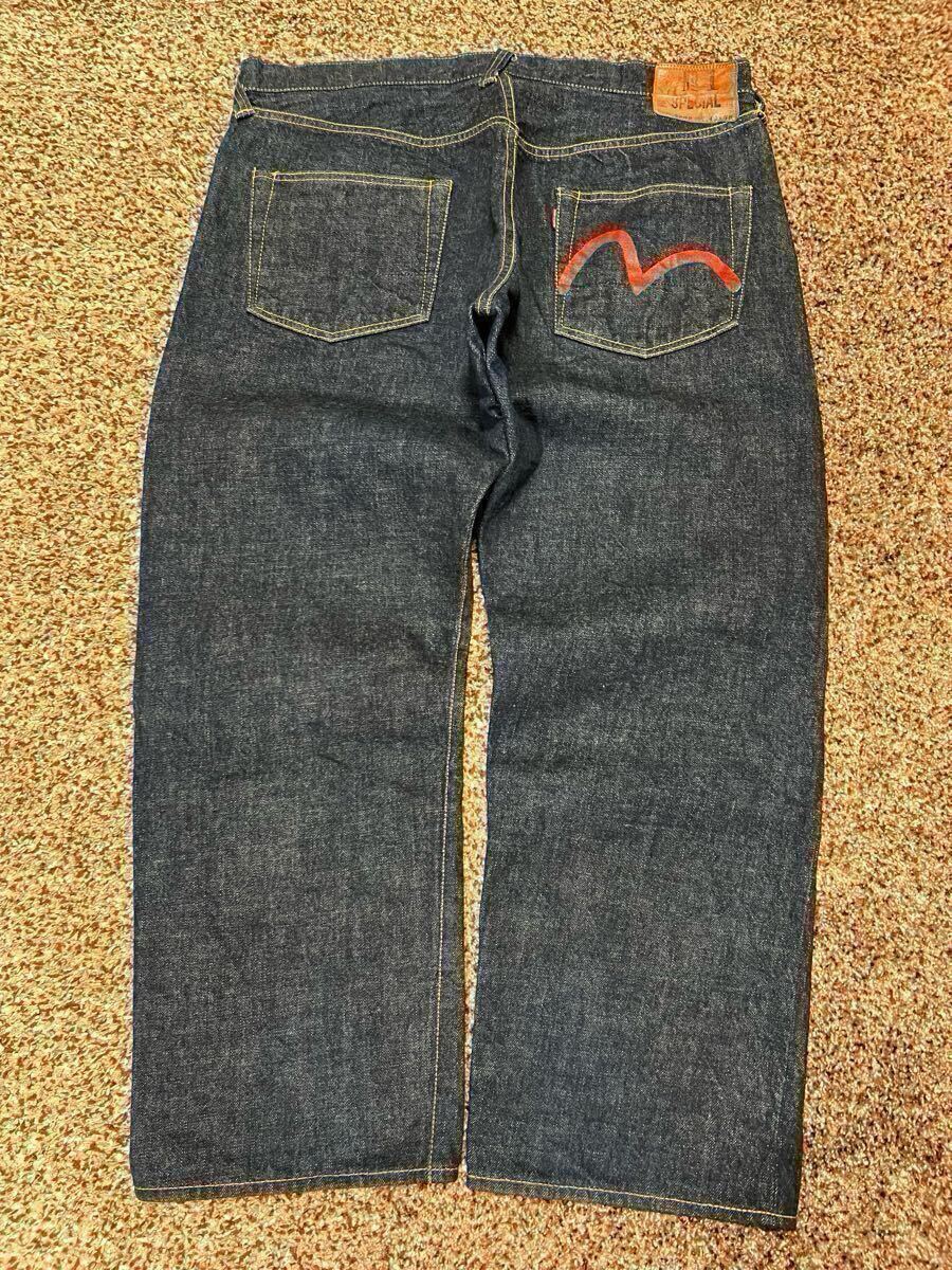 > EVISU No.1 2000 42×35 グレーゴールド耳 赤カモメ 美品 ビックサイズ 銀耳 グレー耳 金耳 濃紺 赤ペイント エヴィス エビス