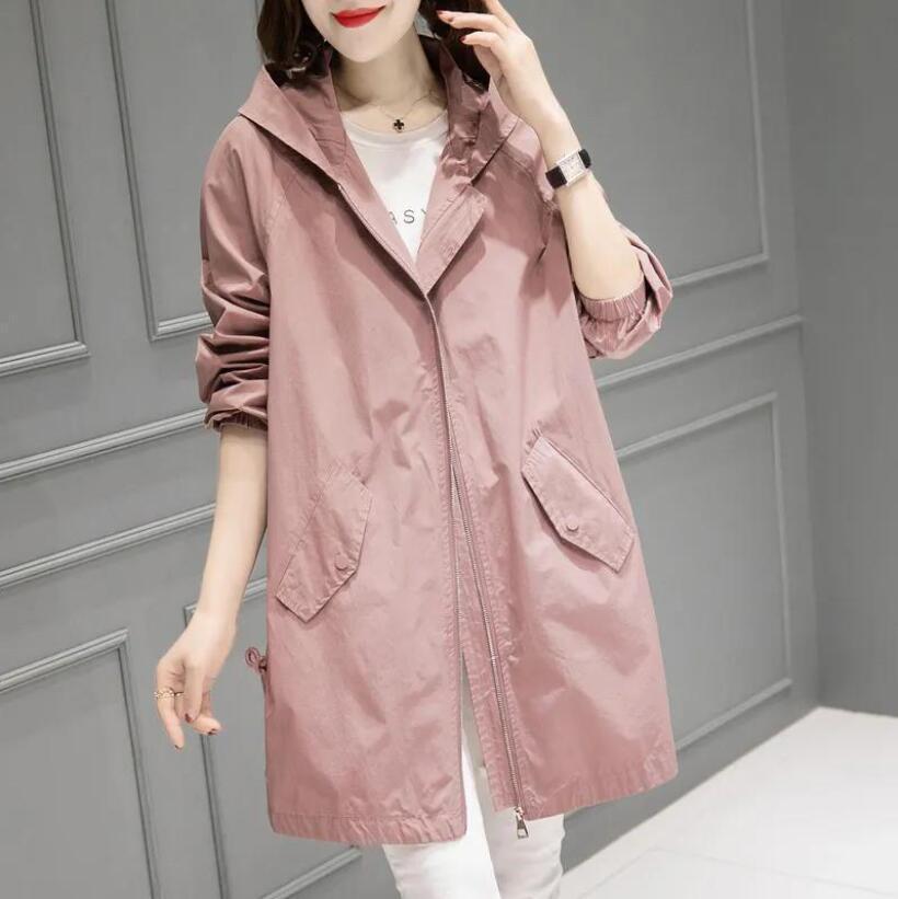 > 春秋新作 / トレンチコート レディース スプリングコート韓国風 薄手 コート ロングコート ミディアムロングコート アウター / ピンク