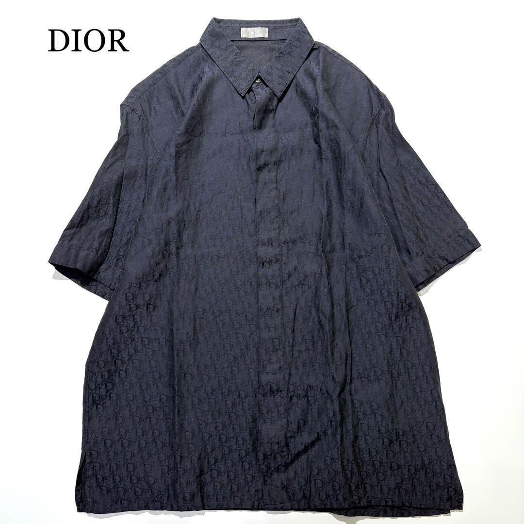 - 【極美品】DIOR Homme シャツ 半袖 オブリーク ネイビー シルク混 M
