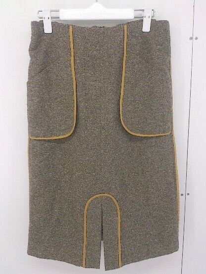 > ◇ FRAPBOIS フラボア 総柄 センタースリット 膝下丈 タイト スカート サイズ1 ブラウン キャメル系 レディース