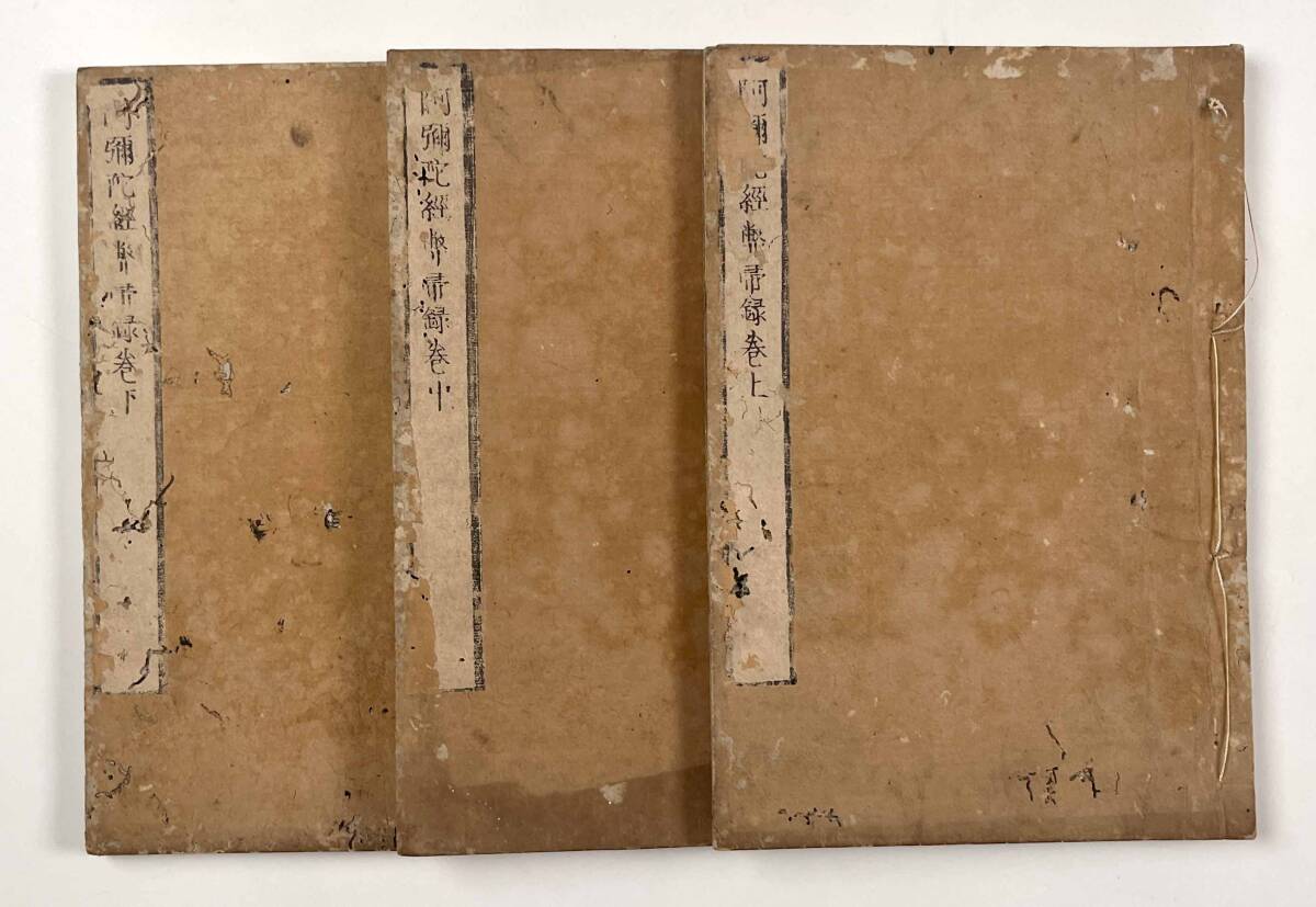- 70313B●『阿弥陀経弊帚録』全3巻揃い 慧鐺 銭屋庄兵衛ほか 延享3年 大本●古書 和本 仏教書 江戸