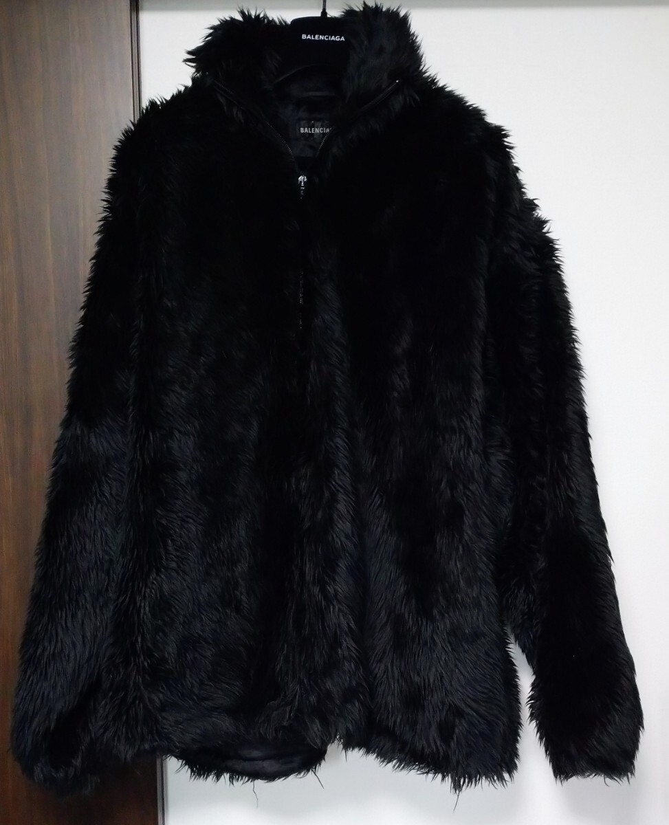 - 新品同様 バレンシアガ ファージャケット 中綿入り ロゴタブ付き 黒 44