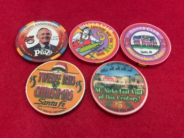 - C-14現状品 チップ 入手困難 本場海外 ラスベガスなど ヴィンテージ カジノチップ $5ポーカーチップ ゴルフマーカー5枚セット