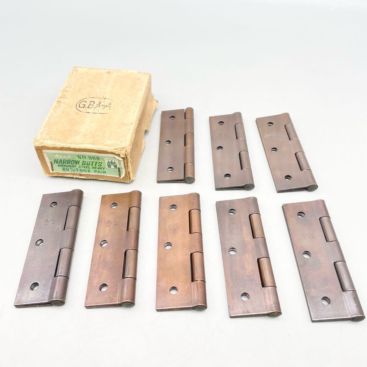 > [新品 未使用品] ARCH アーチ No.868 スチール 丁番 蝶番 89mm 8枚 GB メッキ ブロンズ 建具 ヒンジ 扉 ドア 金物屋 在庫品 まとめ売り