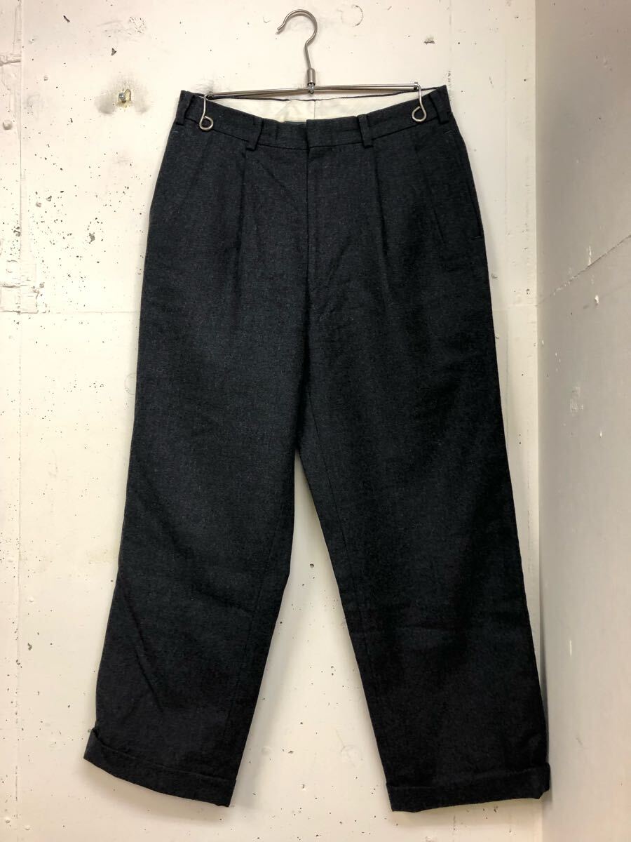 > 美品 NEW YORKER 2タック 裾ダブル ウール スラックス パンツ 秋冬 w76 濃いグレー ニューヨーカー