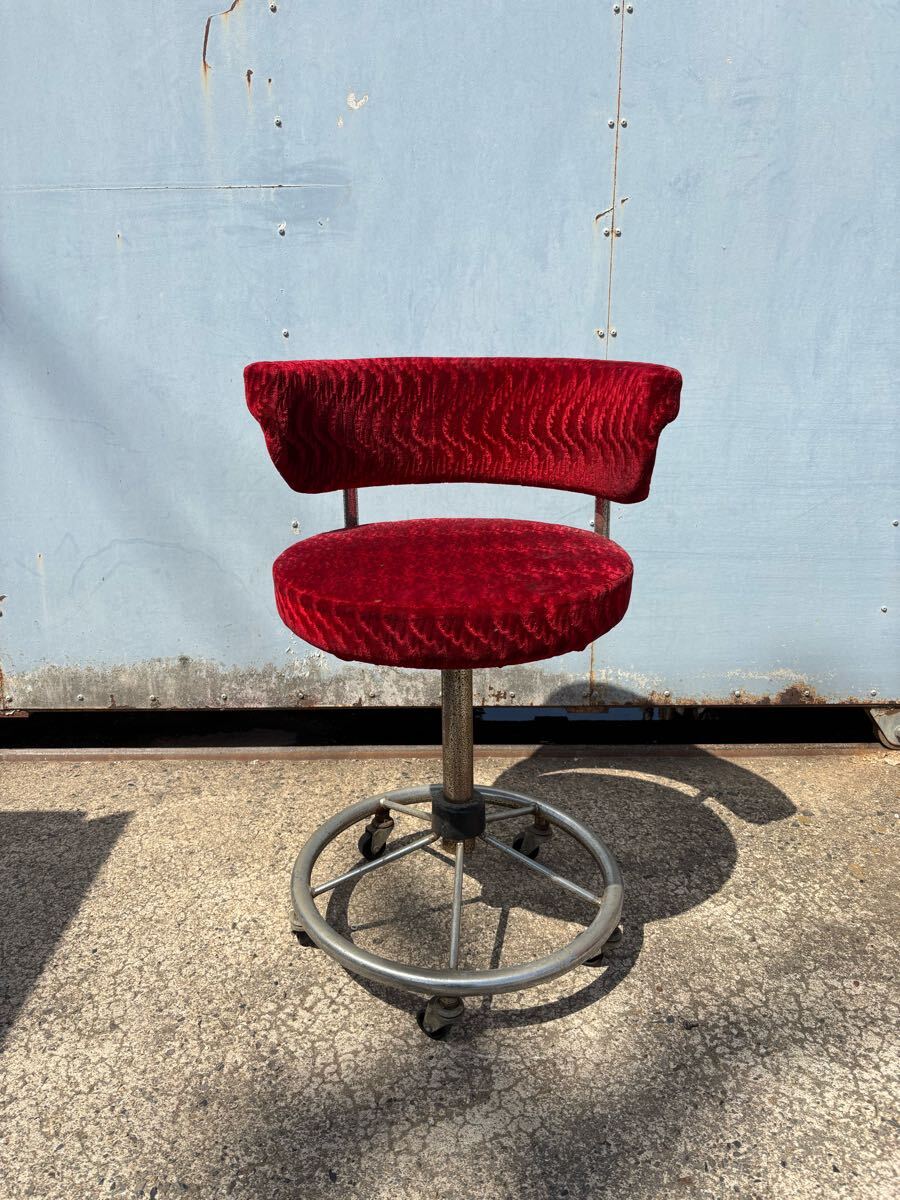 - 奈良発 昭和レトロ カウンターチェア 1人がけ イス 背もたれ キャスター付き