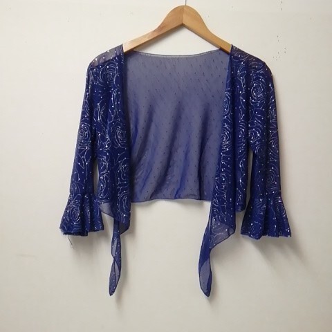 - ★【古着】ボレロ メッシュ ブルー ラメの糸での柄 スパンコール付き 透け感有り