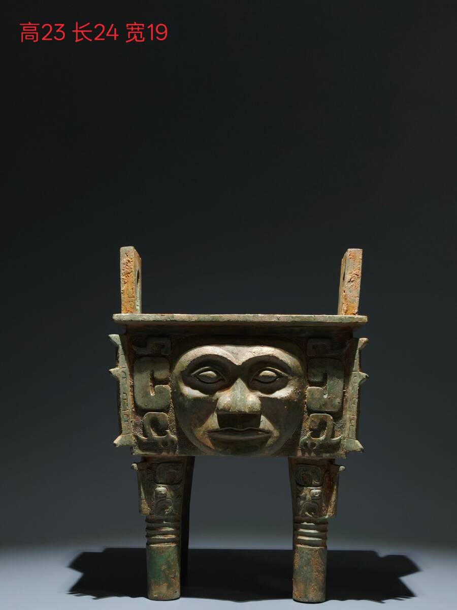 - ▽鴻▽ 商 青銅製 人面方鼎 青銅器 置物 古賞物 中国古玩 中国古美術