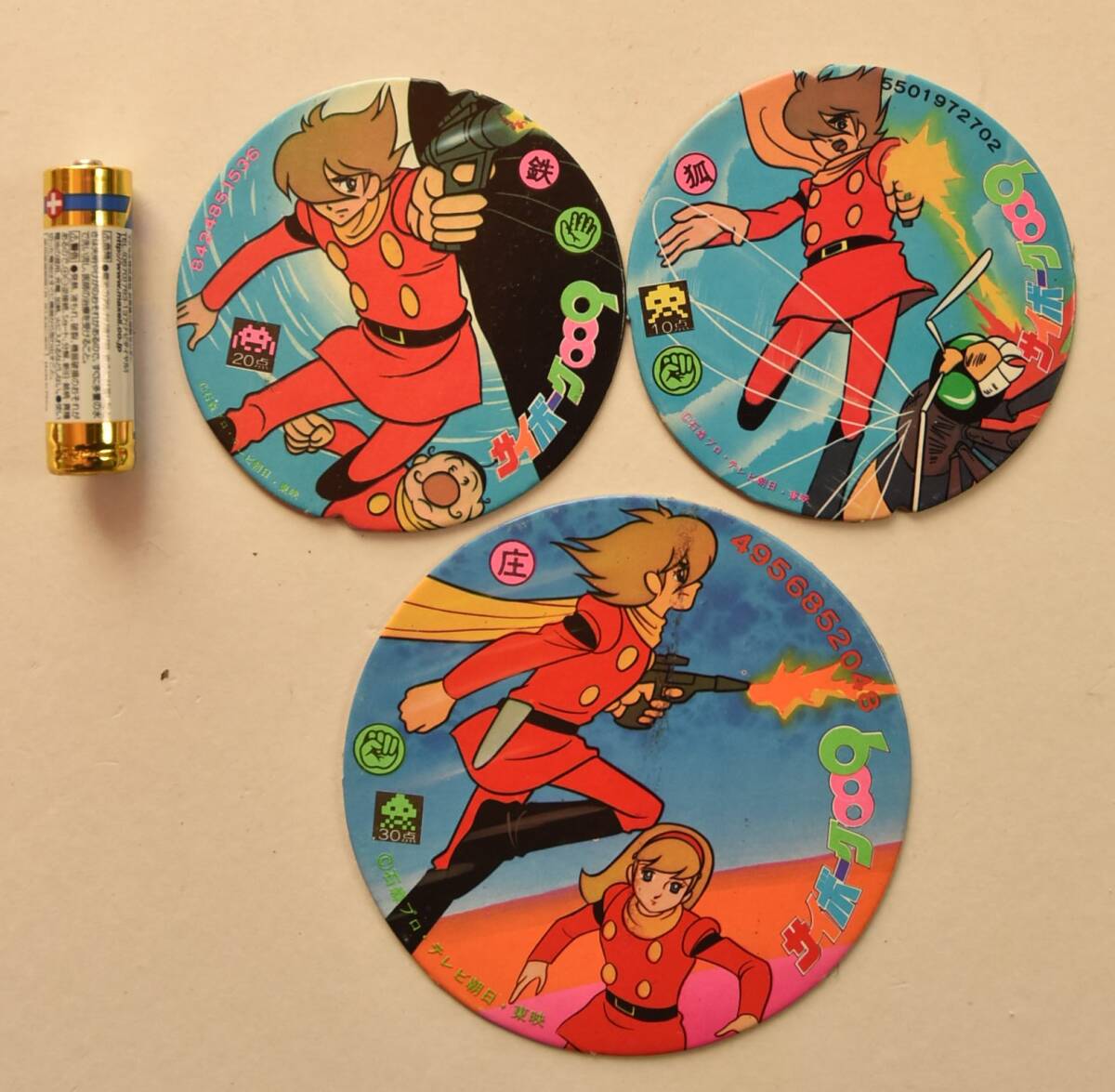 - 3枚セット サイボーグ009 面子 メンコ ビンテージ 中古 9 レア品