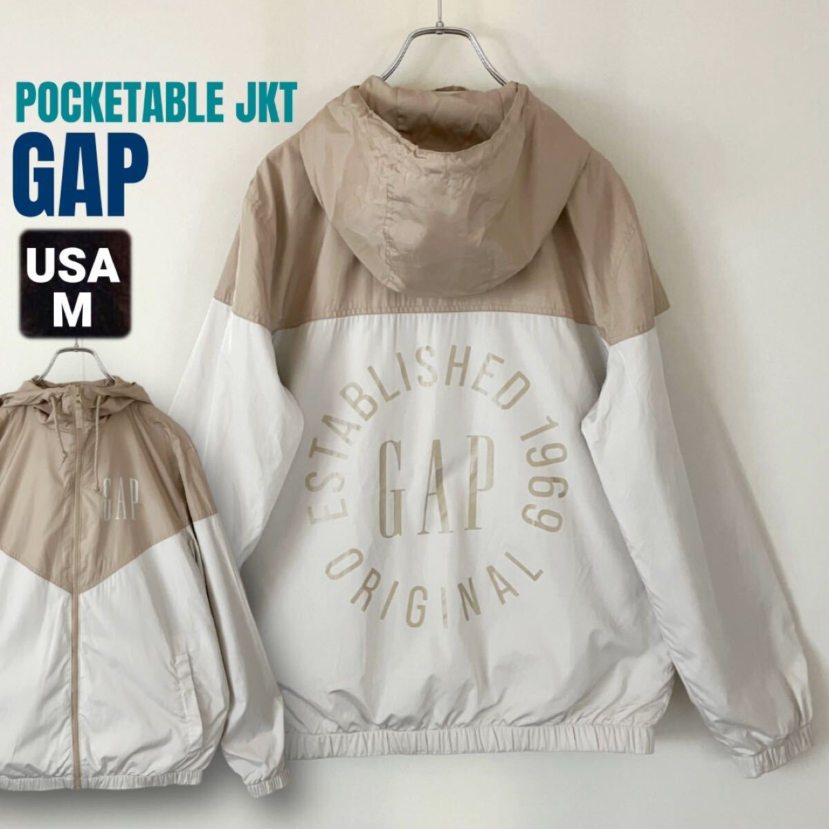 - GAP★ライトアウター★防水ウィンドブレーカー★ポケッタブル★ビッグロゴ★バイカラー★USAメンズM