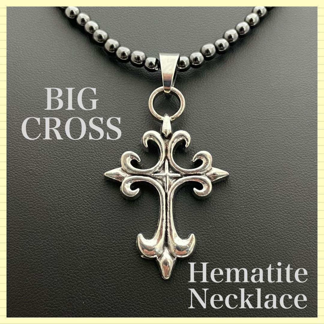 - シルバービッグクロスヘマタイト磁気ネックレス 十字架 肩こり 健康 メンズ 人気