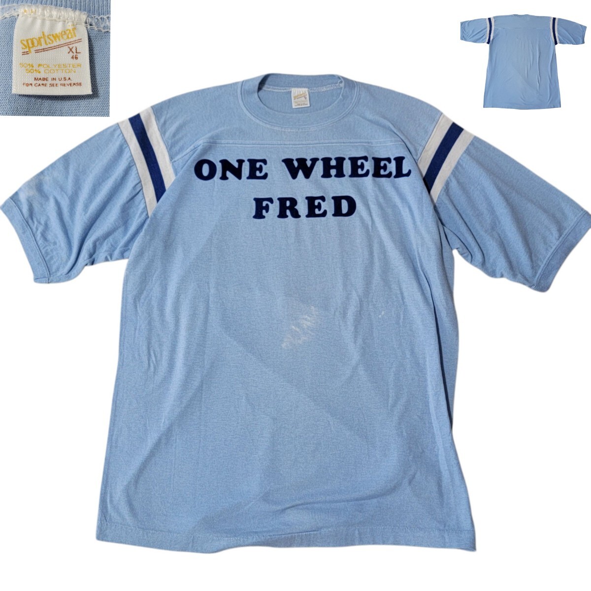 > 【70S~80S】好配色 ブルー VINTAGE ヴィンテージ USA製 sportswear名義 スポーツウェア XL フットボールTシャツ 水色 半袖 Tシャツ