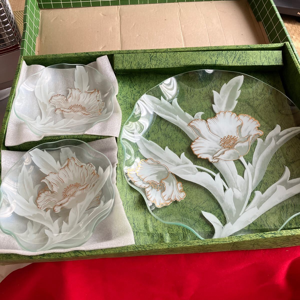 - 花模様のガラス大皿と小皿