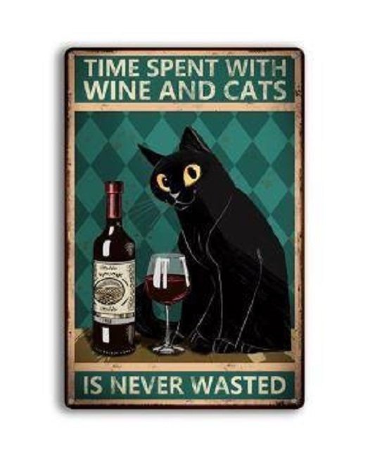 > K333 新品●ブリキ看板 黒猫 猫 ワイン 看板 アメリカ雑貨 おしゃれ ビンテージ アンティーク レトロ CAT お店 インテリア