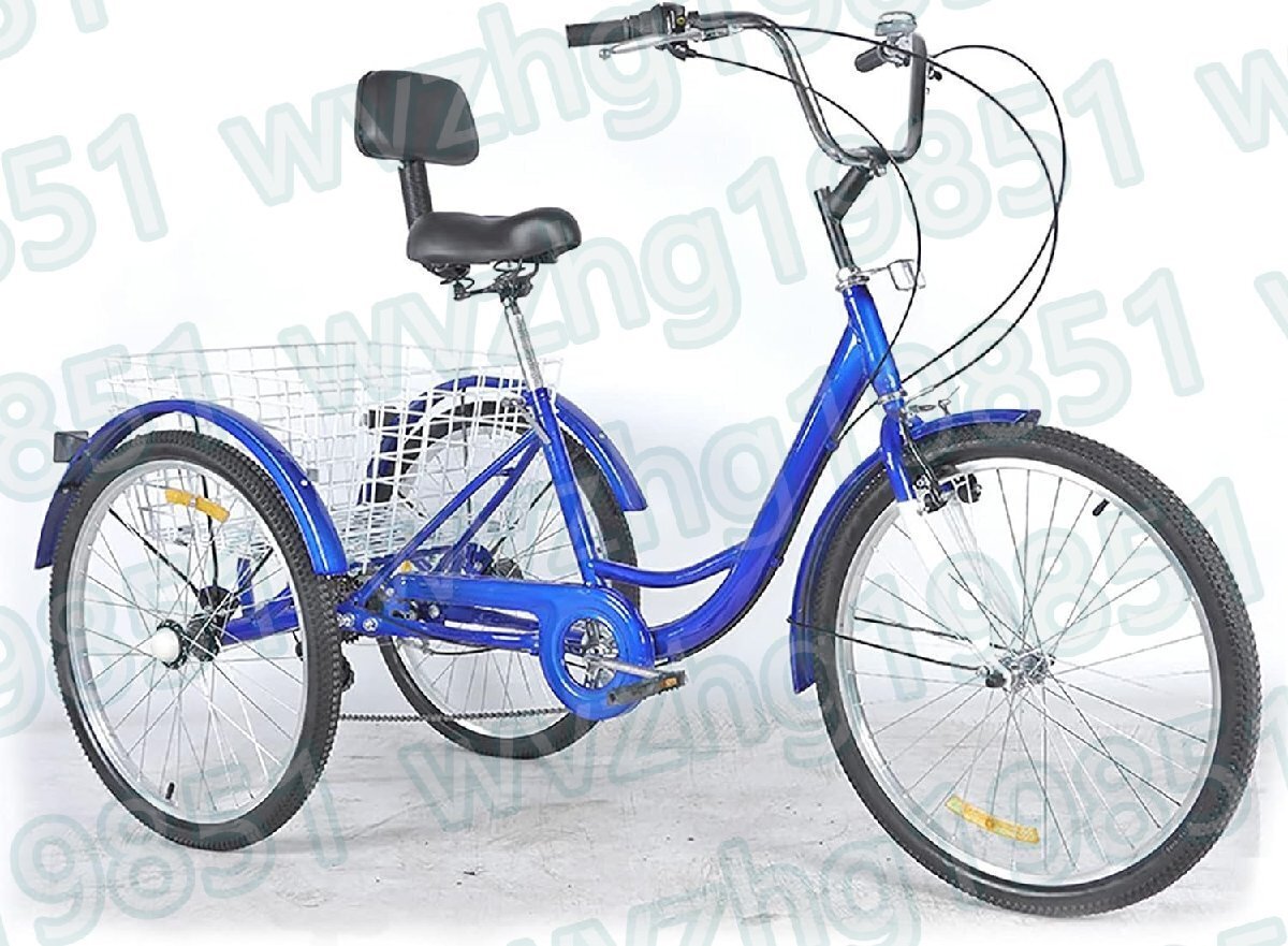 > 三輪自転車 大人用 24インチ 大人の三輪車 サイクリングペダル 高齢者 女性 男性 にとって ショッピング バスケット付き (色 : 青)