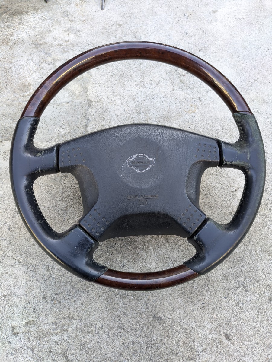 > C35 ローレル クラブS 純正ステアリング R33 R34 GTR GT-R BCR33 C34 ER34 260RS シルビア ステージア ローレル ウッドコンビ RB25 RB26