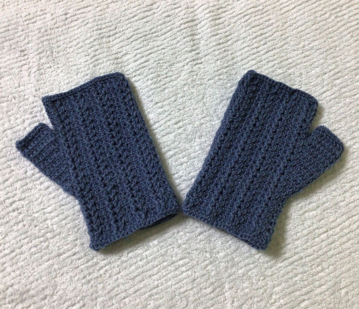 - 【編ハ-1】手編みのハンドウォーマー 指先なしのミトンタイプ スマホ、パソコン操作、読書等作業がしやすく便利♪ 左右どちらでもOK!