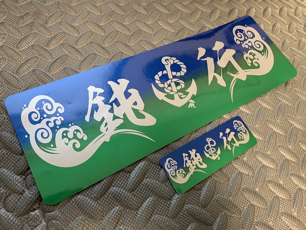 > 送料無料【デコトラ オーダー 防水ステッカー】2枚セット 青緑グラデ/銀字 鈍行 波 錨 デコトラ スクリーン アンドン アルナ 飾り板