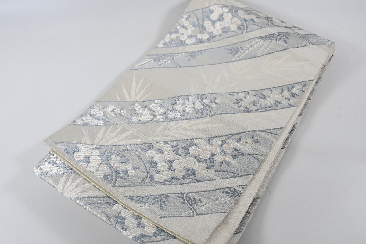 > 袋帯 六通柄 竹 花 帯丈416cm ★着物屋 ne-14881 桜庭呉服店