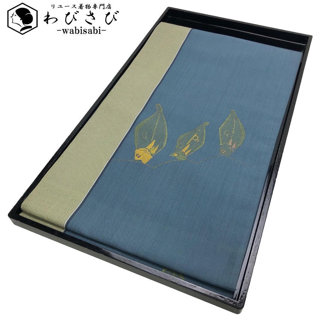 > 袋帯 紬 カレイ 金糸 御召御納戸色 洒落帯 カジュアル O-4970 着物 きもの kimono 和服 和装 中古 リサイクル着物 【送料無料】