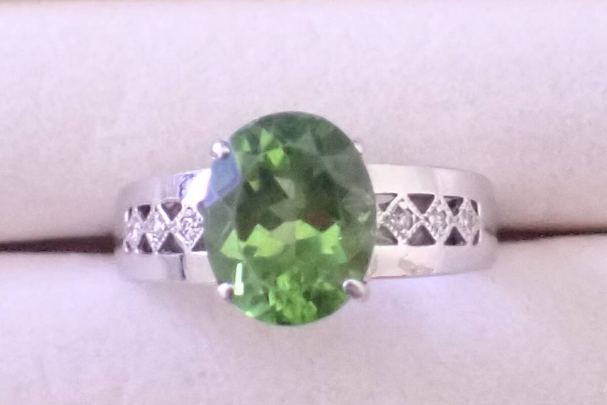 - ペリドット 指輪 4.06ct ダイヤ0.05ct 16.5号