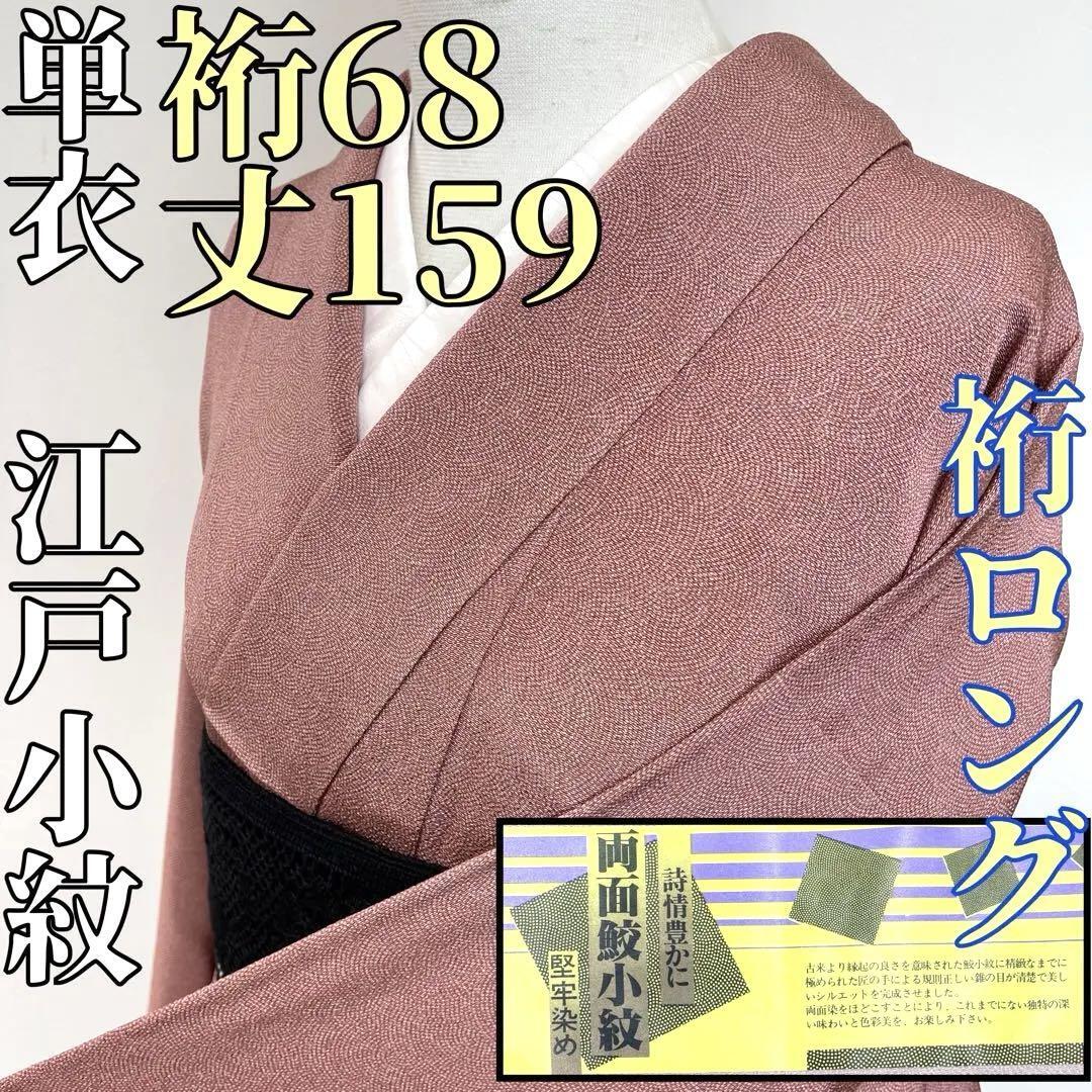 > 【着物と帯 時流】ヒ60y◆正絹 単衣◆裄ロング 江戸小紋 両面堅牢染 証紙付