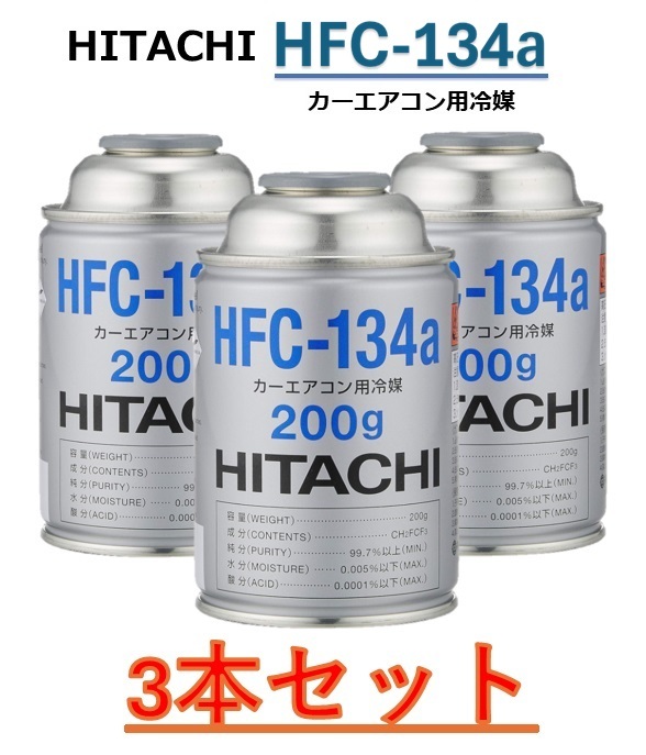 > 【3本セット】HITACHI (日立) カーエアコン用冷媒 ガス (200g) HFC-134a カーエアコンガス クーラーガス