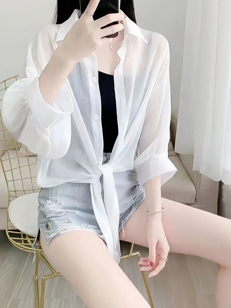 - レディースですが男性でもOKシースルー無地軽量エモいシャツ春夏用カジュアルシックスタイル涼しいよサイズ各種あります可愛いカッコいい