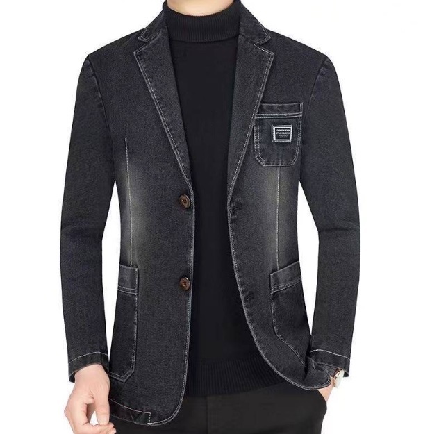 - 新入荷 ファッション デニムテーラードジャケット メンズ ブレザー 紳士 ハンサム スリム カジュアル 黒/L