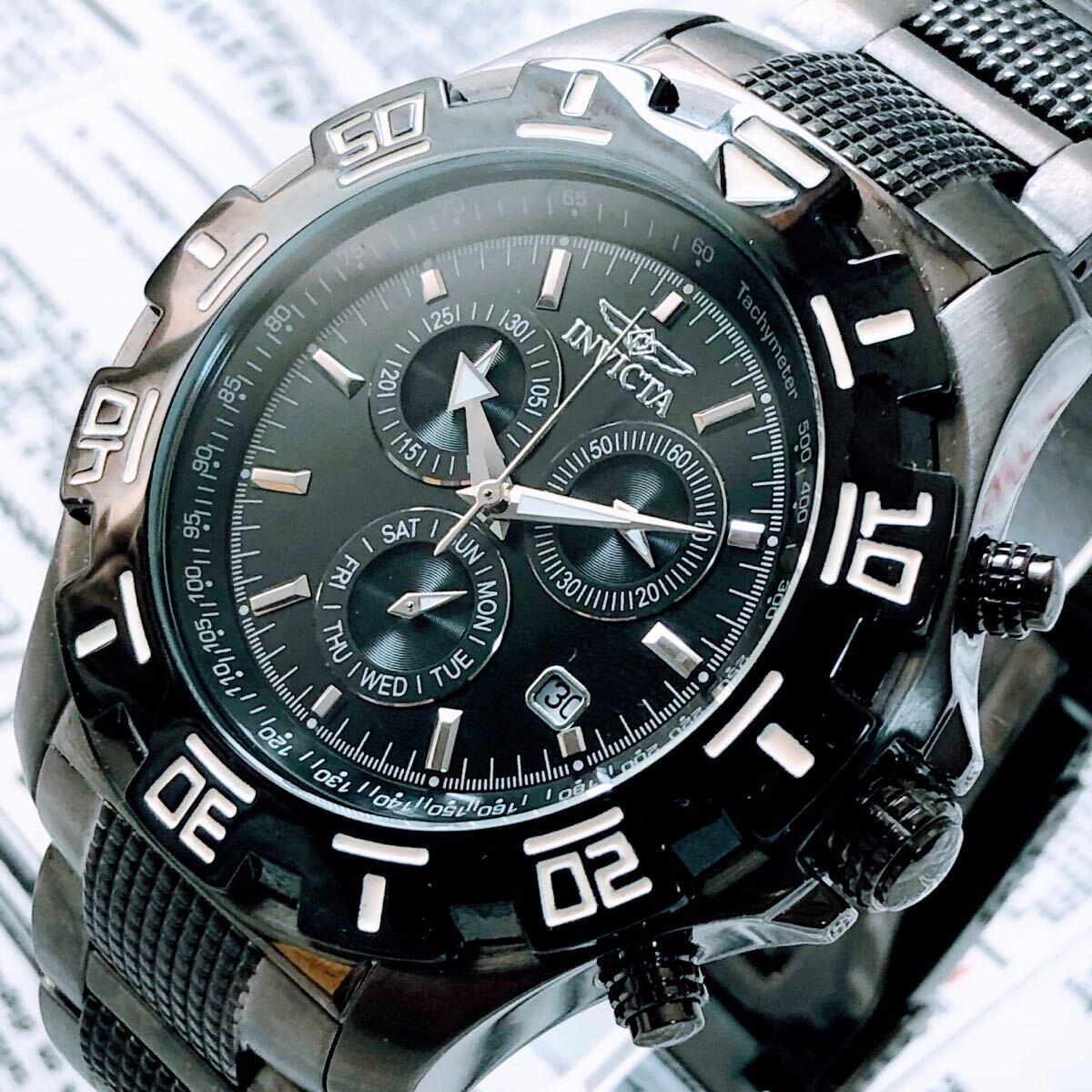 > #3594【大人のお洒落】メンズ 腕時計 インビクタ Invicta クォーツ Quartz 動作良好 ガンメタブラック 防水 インヴィクタ クォーツ 深銀