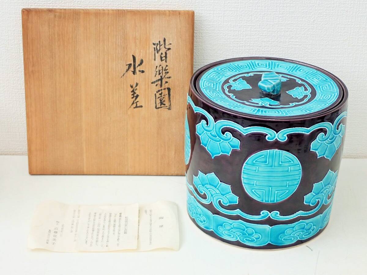 > 偕楽園 近藤登美子 偕楽園製 水指 共箱 未使用保管品/お茶道具 紀州家のお庭焼 K420-5