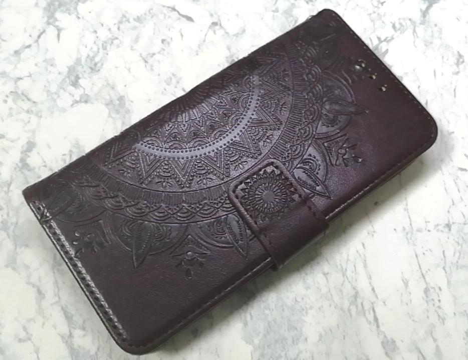 - iPhone15 用 ケース 手帳型 マンダラ ブラウン 茶色 エスニック