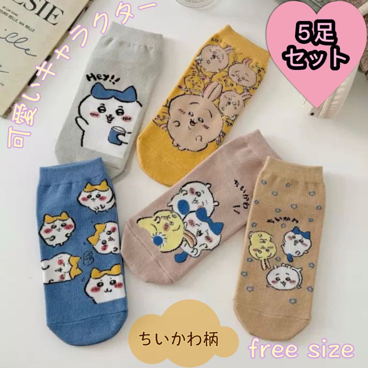 - 可愛いちいかわソックス 5足セット レディースソックス 女性靴下 ショット 新品 子供 女の子靴下 キャラクター