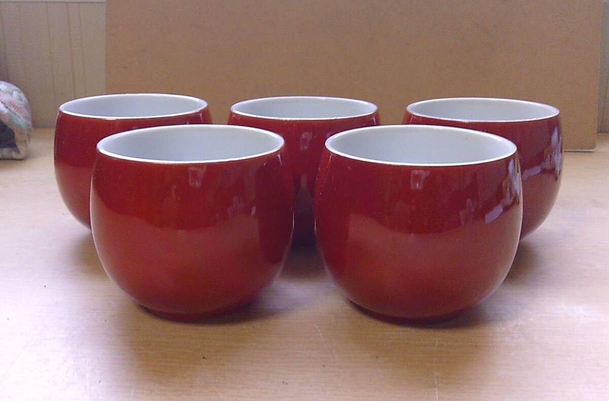 - ◆B‐480 湯呑 5客セット 大竹園 朱赤 高さ6.2cm 口径6.9cm