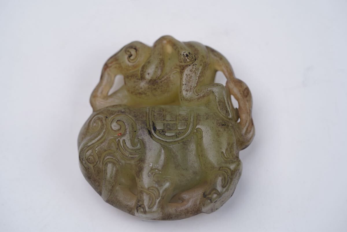 - 【雅園】中国古美術 玉彫り 精工細彫 根付 時代物 唐物 古玩 骨董 藏出 置物 古美術 神獣彫刻 古玉彫刻 時代物