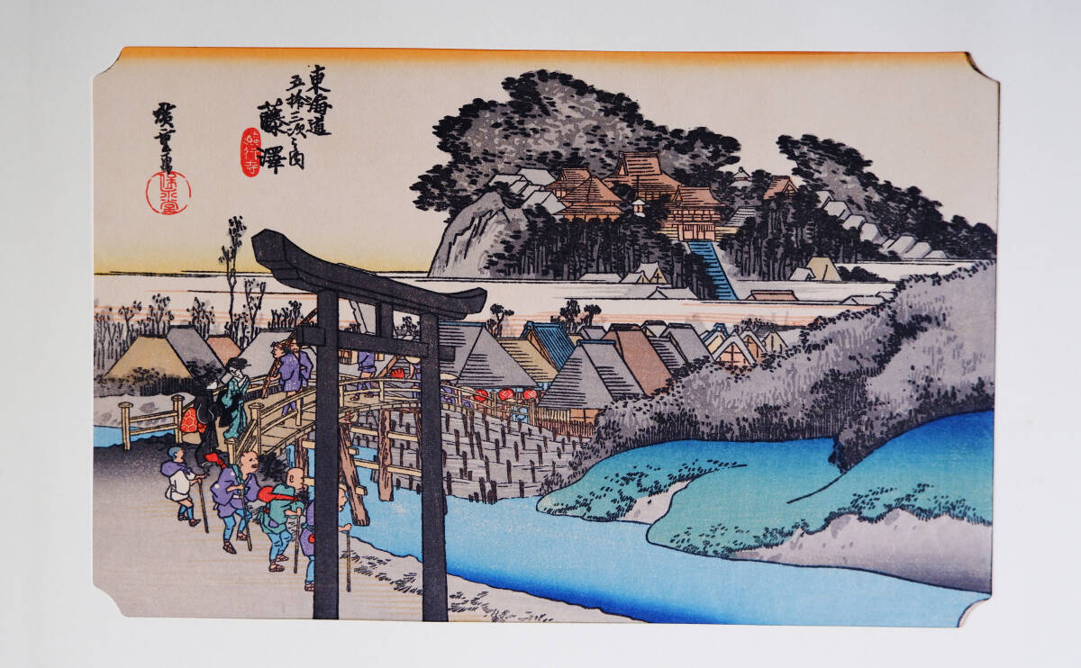 - 【お買得 】広重『東海道五十三次』保永堂より「藤澤(遊行寺)」手摺木版画 高見沢研究所の真作 手刷り 歌川広重 藤沢 べらぼう 浮世絵